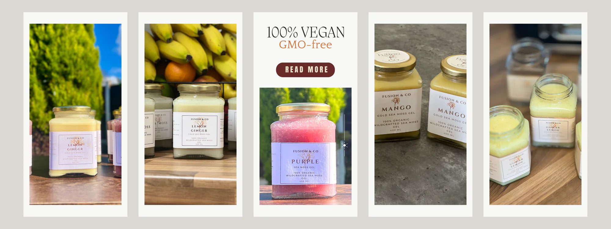 Fusion & Co envisions a world where wellness is a daily luxury. Through our Sea Moss Gels, we aim to redefine health, purity, and vitality, offering an extraordinary boost in every spoonful. 100% vegan and GMO-free. Our commitment to being 100% vegan and GMO-free ensures that you receive the highest quality products for your body and the environment.
